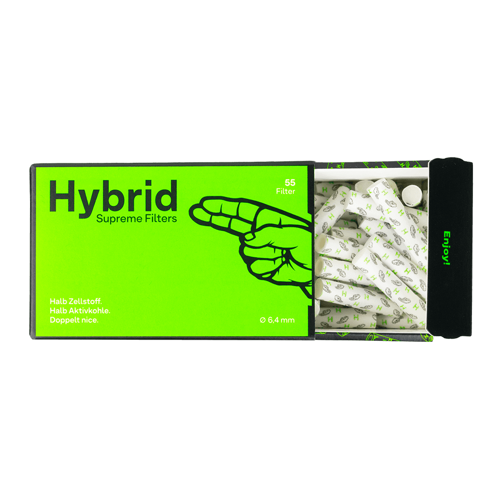 Esta caja de 55 Filtros Hybrid Supreme es nada menos que revolucionaria para los conocedores de hierbas finas. Su diseño único patentado de cuatro etapas combina los beneficios de un filtro de carbón activado con dos capas de celulosa y una punta de flujo libre.